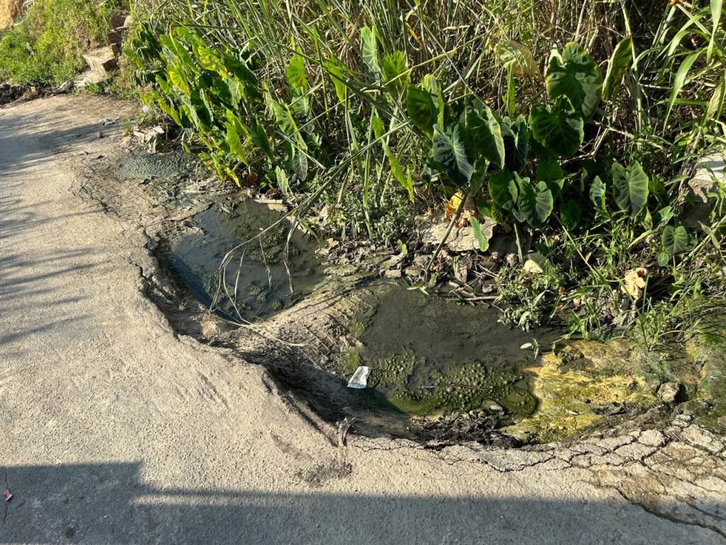 Outra questão crítica é o lixo. Devido às más condições da via, o caminhão de coleta seletiva não passa mais diariamente, recolhendo resíduos apenas duas vezes por semana, geralmente às segundas e quintas-feiras. Isso resulta em um acúmulo excessivo de lixo nas ruas, que é espalhado por cães, entupindo bueiros e que invadem junto com a água as casas durante as chuvas.