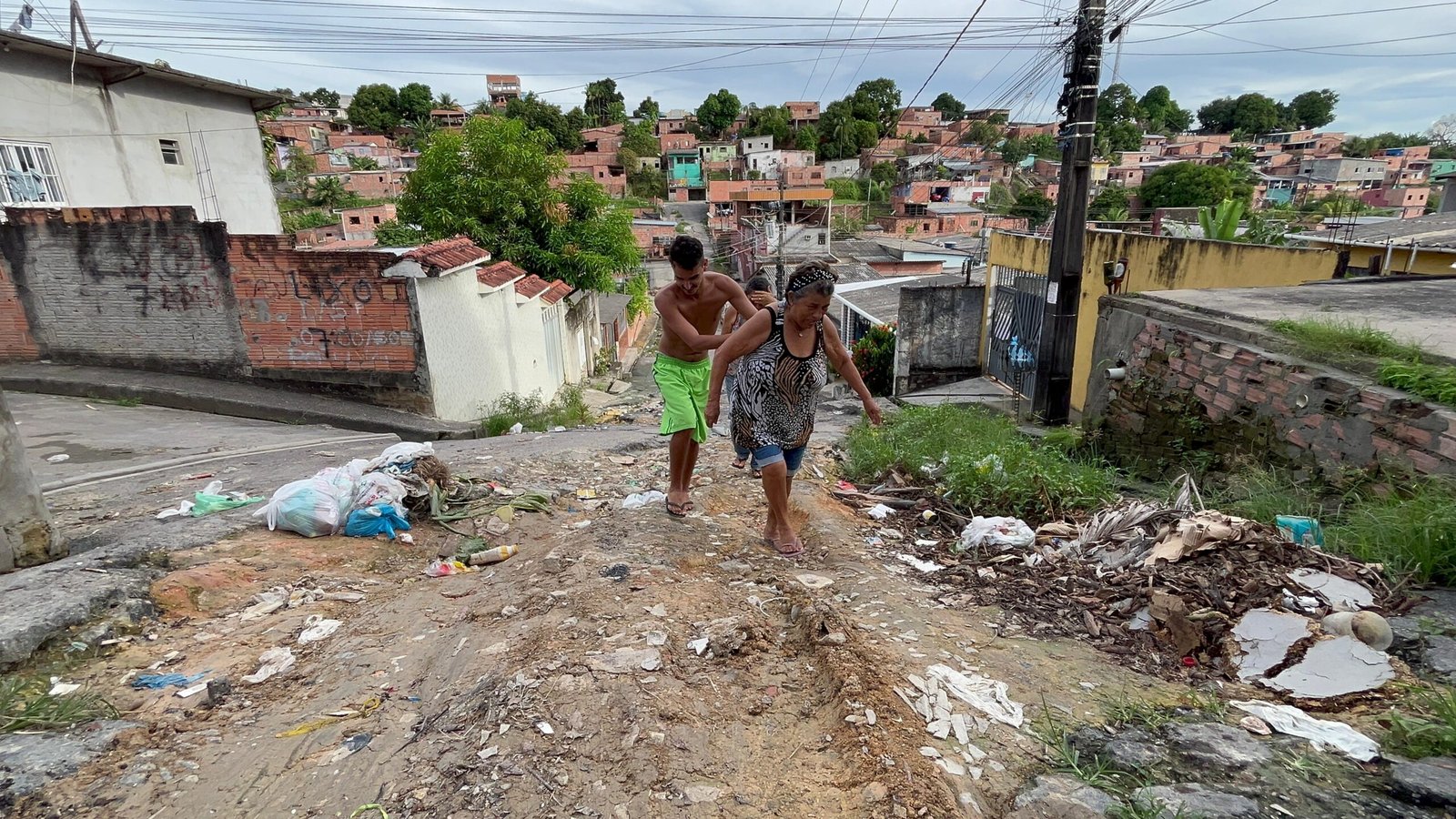 “Já está infiltrando água ali pro meu terreno. Estou vendo a hora de desabar aquela calçada. E outra coisa, esse lixo aqui é falta de consciência do pessoal, jogam o lixo e quando chove tem que viver na lama porque vira um estrago. O lixeiro não sobe mais, fica lá embaixo, é preciso conduzir até lá. Então, queria que uma autoridade viesse conversar, colocar uma placa, melhorar a rua, porque não dá mais”, suplicou Raimunda.