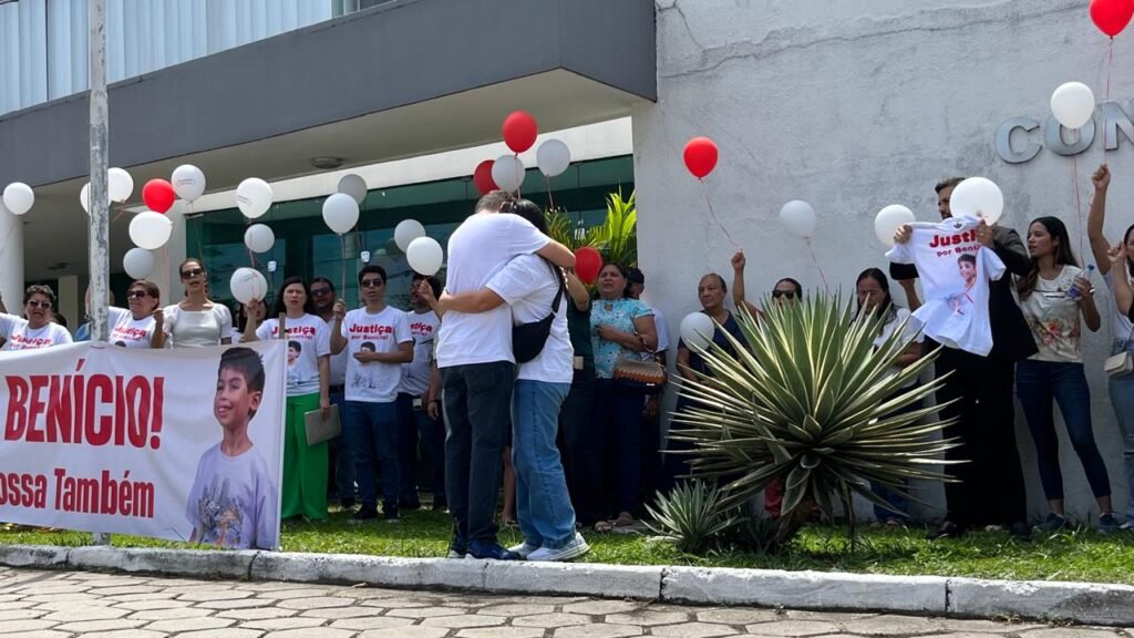 Família de Benício protesta em frente ao CRM e cobra responsabilização pela morte do menino