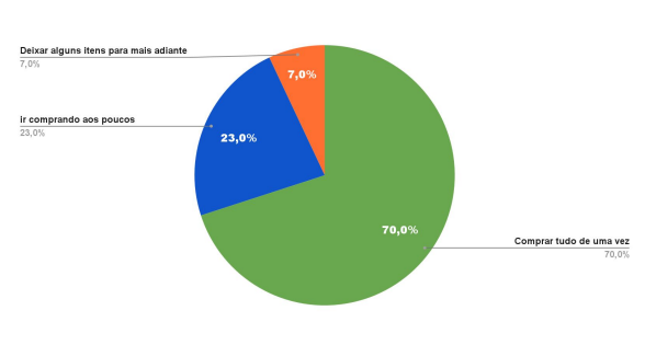 Segundo a pesquisa, 70% das famílias preferem adquirir todo o material escolar de uma vez, priorizando praticidade e economia de tempo. Outros 23% compram aos poucos, comparando preços e diluindo gastos, e 7% deixam parte dos itens para depois do início das aulas.