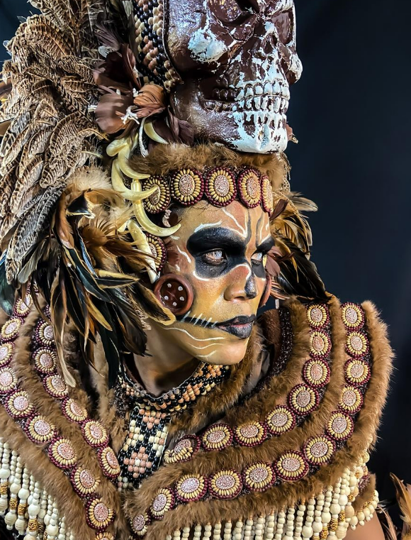 Figura ligada à espiritualidade e à sabedoria ancestral, o Pajé representa a conexão com os povos indígenas, os rituais e a força da floresta. É um dos itens de maior carga simbólica do espetáculo. No Acará-Disco, Flávio Amadeu, no Cardinal, Emerson Martins.