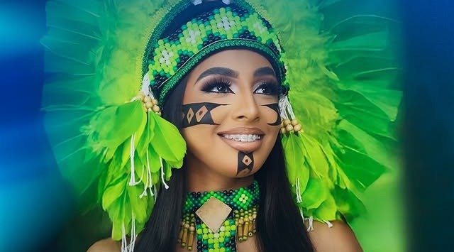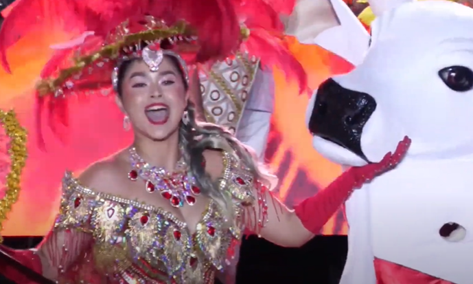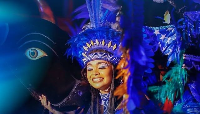 A rainha do folclore exalta a cultura popular amazônica por meio da dança, figurino e expressão corporal.