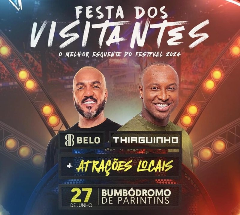 Este ano, a Festa dos Visitantes terá como atrações nacionais os cantores Thiaguinho e Belo. De acordo com o secretário de Cultura e Economia Criativa, Marcos Apolo Muniz, o segundo ano da Festa dos Visitantes no Bumbódromo vai ser ainda melhor que a estreia.