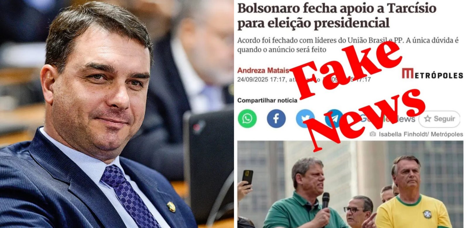 BRASÍLIA (DF) – O senador Flávio Bolsonaro (PL) utilizou suas redes sociais nesta quarta-feira, 24/9, para desmentir a informação publicada pela, inicialmente, pelo portal Metrópoles, de que o ex-presidente Jair Bolsonaro teria dado aval para que o governador de São Paulo, Tarcísio de Freitas (Republicanos), disputasse a Presidência em 2026 com seu apoio.