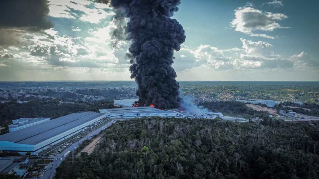 De acordo com o Corpo de Bombeiros Militar do Amazonas (CBMAM), o incêndio segue confinado ao galpão principal da fábrica, sem atingir áreas de vegetação próximas.