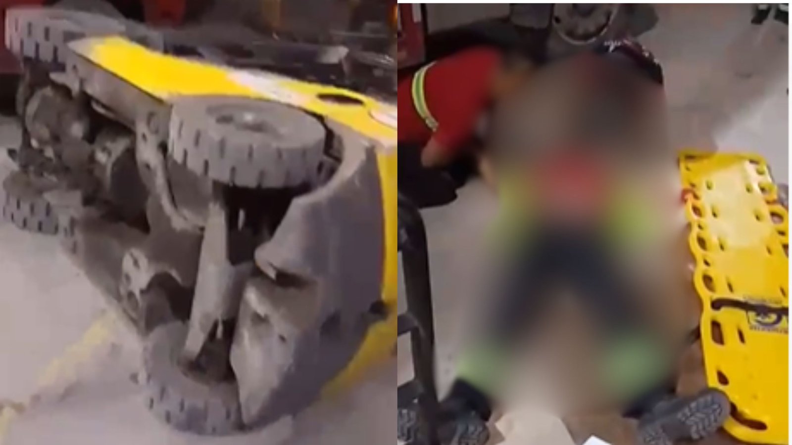 Vídeos gravados por colegas de trabalho mostram a mulher caída no chão com a empilhadeira virada. As testemunhas pediam para a mulher ficar acordada até o resgate chegar.