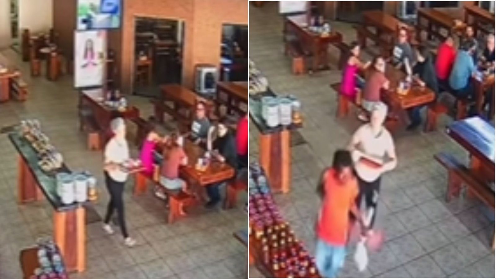 De acordo com as imagens, a funcionária estava com uma bandeja com café na mão quando foi abordada pelo suspeito, identificado apenas como “neguinho”. Ela para por um momento e, em seguida, passa por ele. Nesse instante, o homem passa a mão nas partes íntimas da mulher.