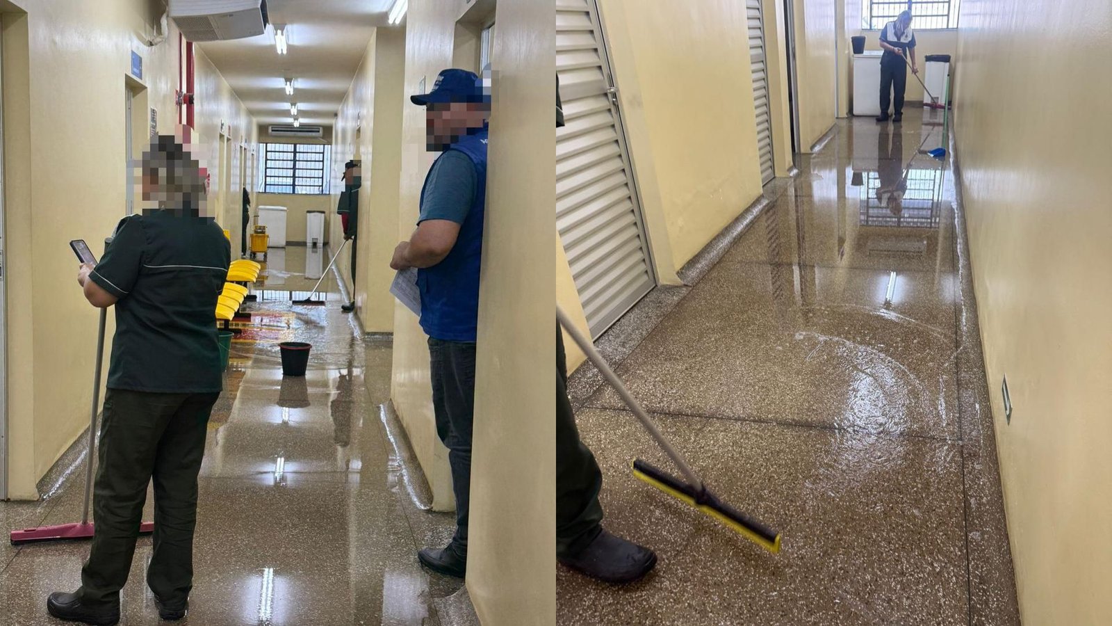 De acordo com vídeos publicados nas redes sociais, salas de atendimento e a recepção da unidade aparecem alagadas, com os próprios funcionários tendo que escoar a água dos corredores. Em razão da situação, os atendimentos precisaram ser paralisados.