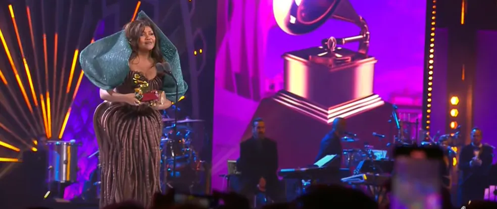 “Sou uma artista da floresta Amazônica brasileira. Estou aqui vestida de Samaumeira, uma árvore da Amazônia que tem grandes raízes. Preciso dizer que precisamos cuidar da nossa floresta e uma forma de cuidar é ouvir sua música e conhecer sua cultura”, afirmou a cantora ao receber o gramofone de ouro.