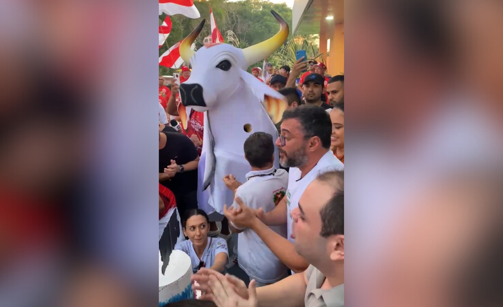 Além de enaltecer a relevância cultural do festival, o governador, que também comemora seu aniversário nesta quarta-feira, aproveitou a ocasião festiva para cantar parabéns ao lado dos dois boi-bumbás e seus presidentes Rossy Amoedo e Fred Goes.