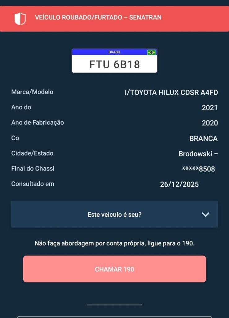 O caso está sendo investigado pelo 22º Distrito Integrado de Polícia (DIP), responsável pela área. A polícia orienta que proprietários evitem deixar objetos de valor no interior dos veículos, prática que pode atrair a ação de criminosos.