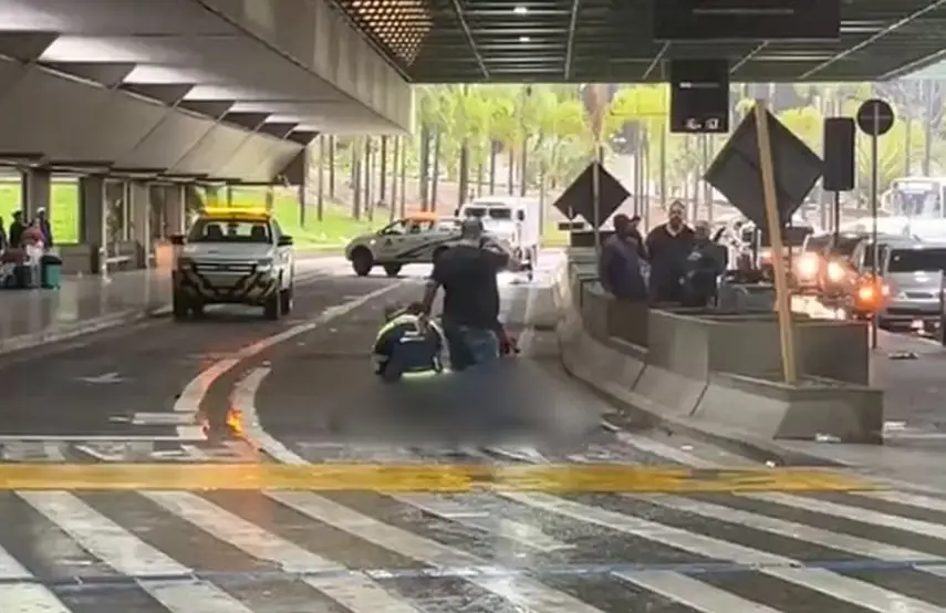 A Secretaria de Segurança Pública (SSP) do Estado de São Paulo não confirmou a identidade da vítima. Vídeos divulgados nas redes sociais mostram um homem caído perto de uma faixa de pedestres em frente a um dos acessos do aeroporto.
