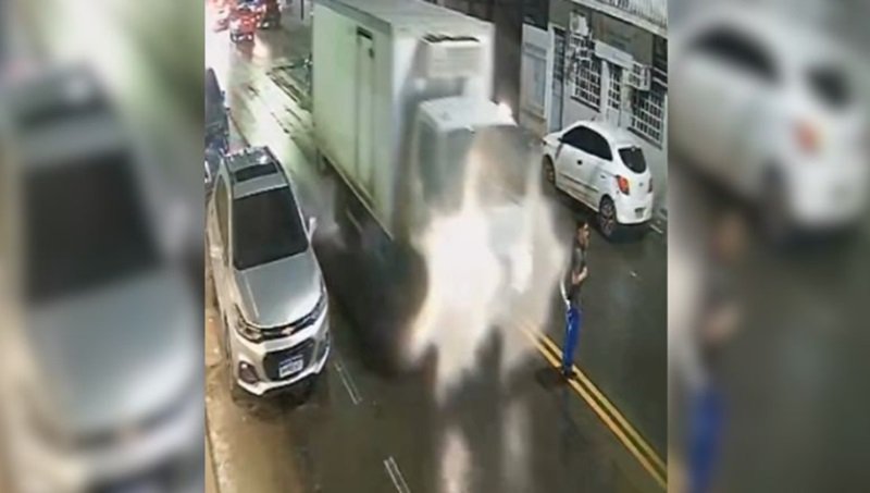 Imagens de uma câmera de vigilância registraram o momento em que o rapaz, aparentemente distraído no meio da via, aguardava para atravessar, olhando somente para o lado direito da avenida. Sem perceber o veículo vindo do sentido oposto, ele acaba sendo atingido por um caminhão em alta velocidade.