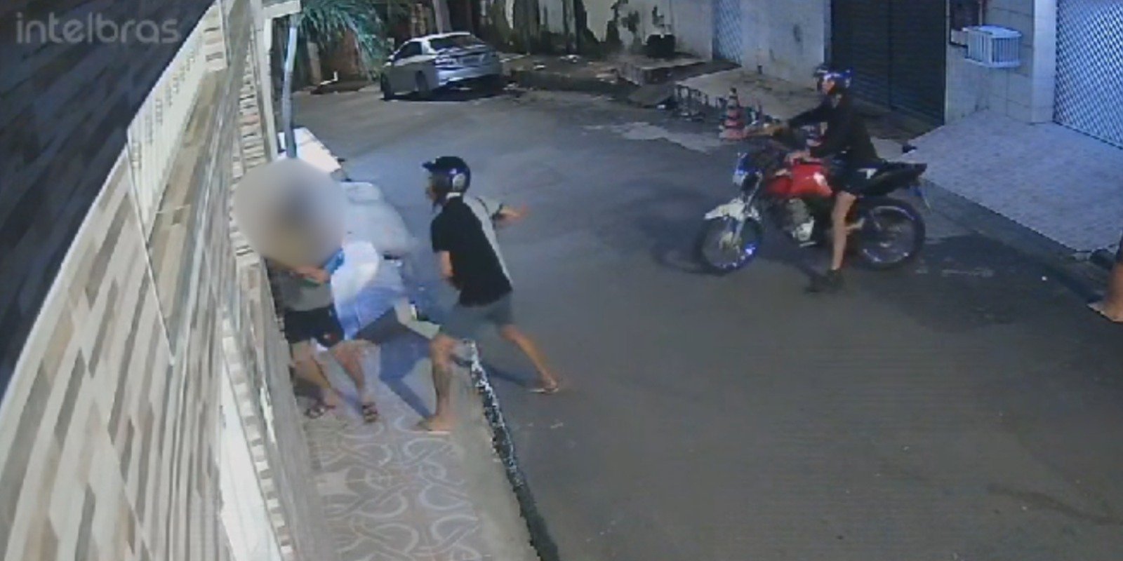 Imagens das câmeras de segurança de uma residência próxima de onde aconteceu o crime mostram o momento em que o garupa da motocicleta aborda o homem com uma arma, levando seu celular.