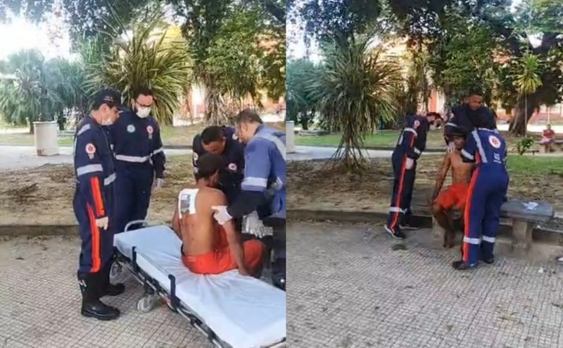 MANAUS (AM) – Um homem em situação de rua foi esfaqueado nesta segunda-feira, 22/7, na Praça da Polícia, no Centro histórico de Manaus, na zona Sul da capital. Segundo quem estava no local, a vítima estava descansado quando foi supreendido por delinquentes que o atacaram.