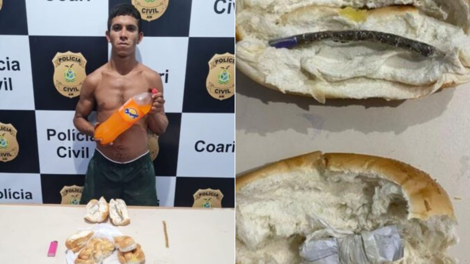 MANAUS (AM) – Um homem identificado como Messias Lima da Silva, 25, foi preso em flagrante nesse sábado, 21/11, com drogas escondidas dentro de pães em uma delegacia no município de Coari, a 370 quilômetros de Manaus.