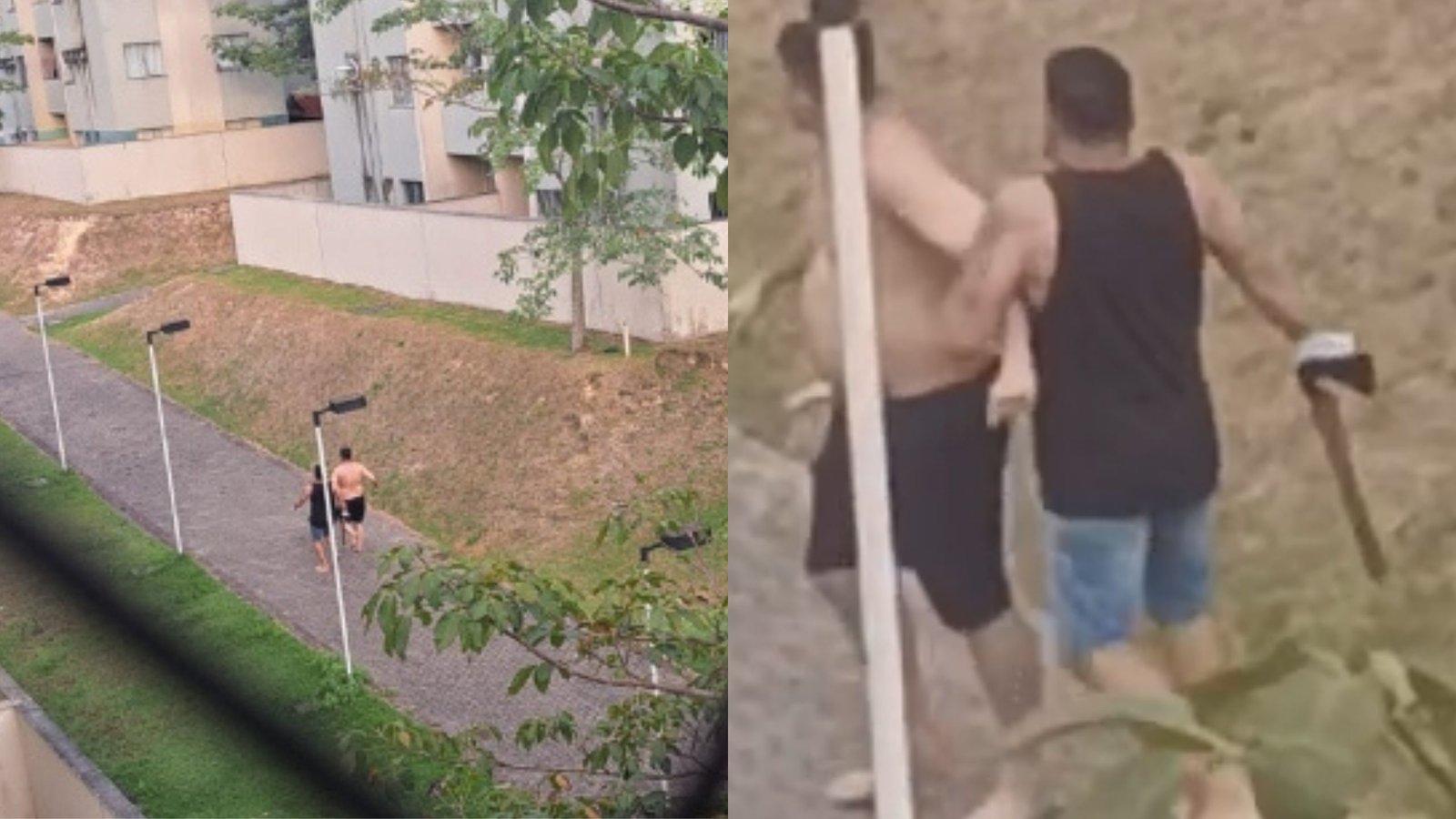 Nos vídeos que circulam nas redes sociais, ele corria atrás da vítima com uma machadinha e dizia que ia “estourar a cabeça” dela e iria matá-la. Abalada pelo ocorrido e assustada, ela procurou a delegacia para registrar a ocorrência.