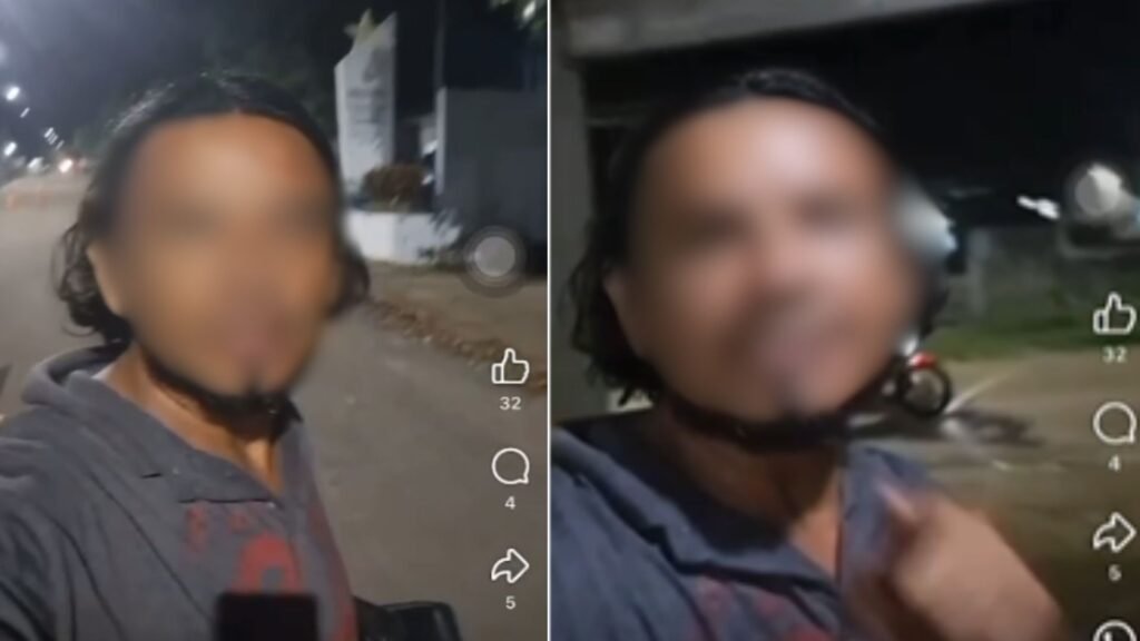 A mulher afirmou ainda que o companheiro a ameaçou, dizendo que iria “cortá-la com um terçado”. Temendo pela própria segurança, ela se trancou dentro de casa. O homem foi identificado como o mesmo que havia gravado o vídeo mais cedo e, em seguida, foi conduzido à delegacia.