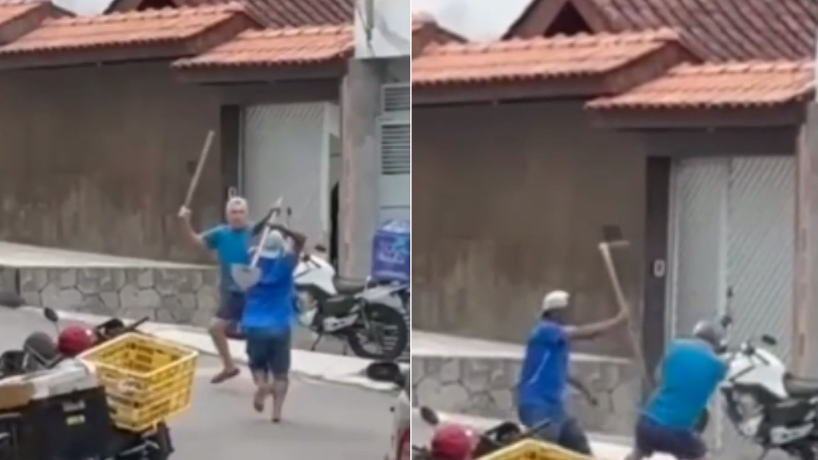 Imagens divulgadas nas redes sociais registram o momento em que o suspeito ataca violentamente o idoso. De acordo com testemunhas, a agressão teria sido motivada por uma discussão envolvendo um cano que estaria despejando água no quintal de um dos envolvidos.