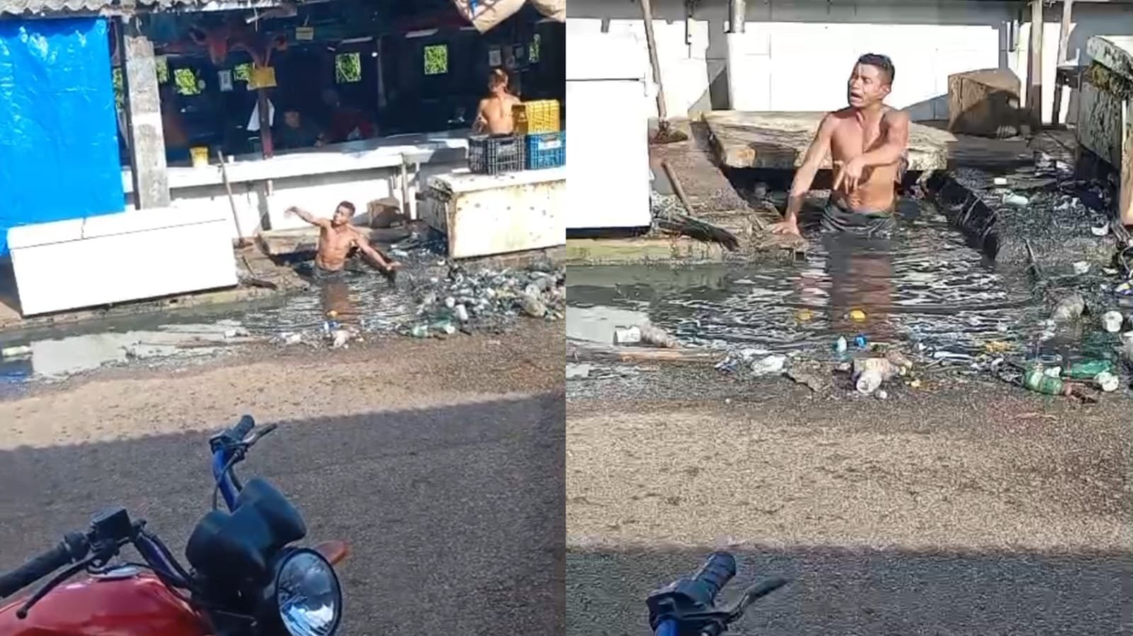 Nas imagens, moradores relatam que a atitude do homem foi motivada pela falta de limpeza e de serviços de saneamento básico na região. “Ele está demonstrando toda a indignação porque alega que o poder público não paga mão de obra para tratar o esgoto”, afirmou um dos presentes.