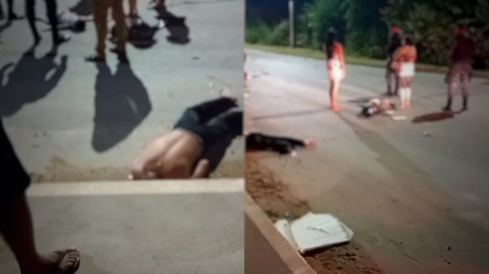 Imagens registradas por testemunhas mostram a gravidade da colisão: capacetes destruídos, marcas de frenagem na pista e destroços espalhados pela rodovia. A carreta envolvida parou a vários metros do ponto de impacto.