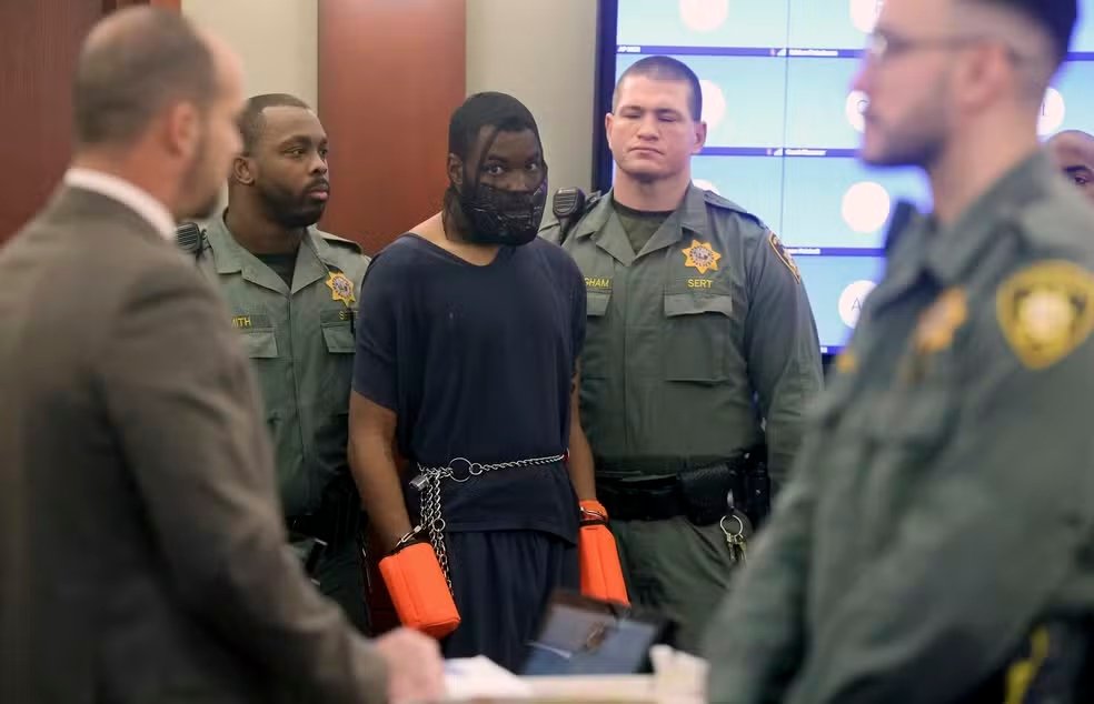 Deobra Delone Redden pulou o banco dos réus e atacou a juíza do Tribunal Distrital do Condado de Clark, Mary Kay Holthus, em sua sala de audiências na semana passada, após tentar convencer a juíza de que estava mudando em relação a seu passado violento. Ele compareceu ao tribunal algemado, com uma máscara no rosto e luvas laranjas nas mãos.