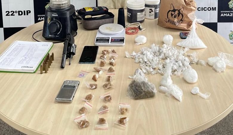 “Na residência desse criminoso, foram apreendidas drogas como maconha, cocaína, oxi e ecstasy, além de armas, munições, balança de precisão e outros materiais usados no tráfico”