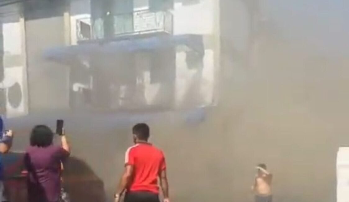 Um morador registrou imagens do momento em que a fumaça tomava conta do local, mostrando a dimensão do incêndio.