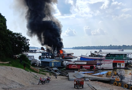 MANAUS (AM) – Vídeos que circulam nas redes sociais nesta quinta-feira, 17/10, mostram um incêndio de grandes proporções consumindo embarcações atracadas no Porto de Japurá, localizado a 744 quilômetros de Manaus.