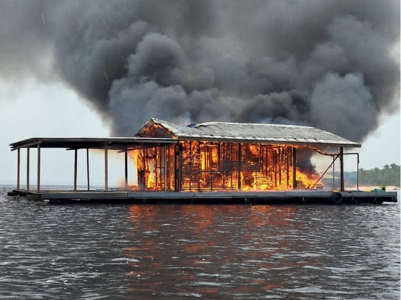 MANAUS (AM) – Um flutuante foi destruído por um incêndio na tarde desta segunda-feira, 23/2, na região do Tarumã-Açu, zona Oeste da capital amazonense. As chamas se alastraram rapidamente e consumiram grande parte da estrutura.