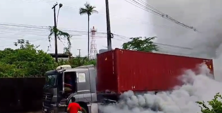 Em outro incidente, próximo à bola da Suframa, uma carreta pegou fogo na área que dá acesso ao Porto Chibatão, próximo ao Polo Industrial de Manaus (PIM) e à Base Aérea de Manaus.