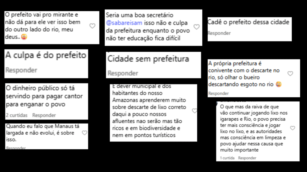 Outro comentário ironizou a presença frequente do prefeito no Mirante Lúcia Almeida, destacando que a situação no São Raimundo é visível da mesma região. “O prefeito vive no mirante, mas não consegue enxergar isso do outro lado do rio?”, questionou um internauta.