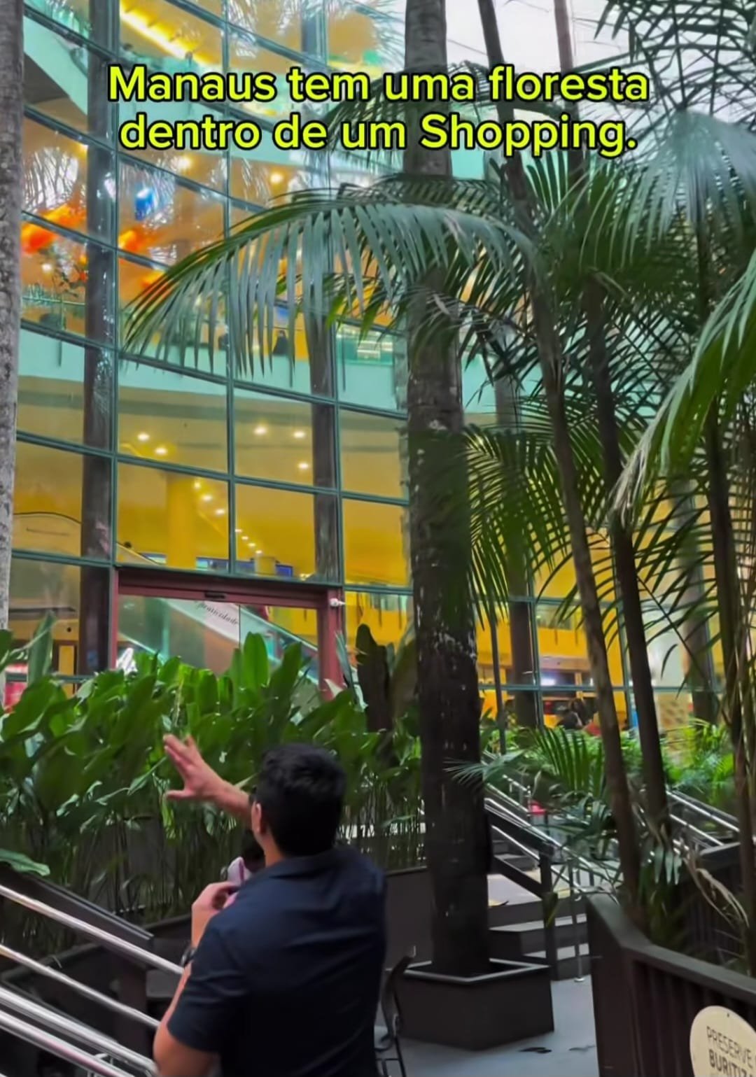 MANAUS (AM) – O influenciador Rodrigo Henry viralizou nas redes sociais ao mostrar o interior de um shopping localizado na zona Centro-Sul de Manaus. O espaço chama atenção por abrigar uma ampla área de floresta, integrando elementos da natureza amazônica à arquitetura do empreendimento.