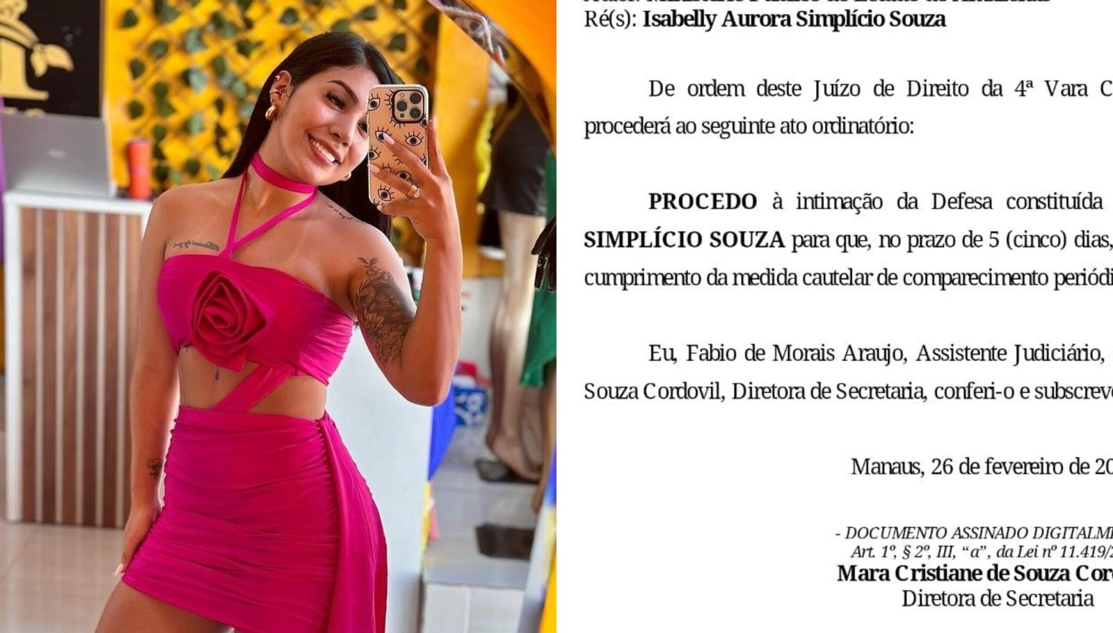 Nesta quinta-feira, 29/2, a juíza titular da 4ª Vara Criminal emitiu ordem determinando que a acusada Isabelly Aurora “explique de imediato“, o motivo do não cumprimento das condições impostas, que possibilitaram a ré de responder ao processo em liberdade.
