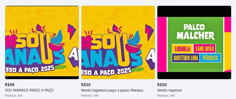 MANAUS (AM) – Anúncios de vendas de ingressos do Festival “#SouManaus Passo a Paço 2025” estão sendo registrados em sites e perfis falsos na internet. O comércio ilegal tem gerado dúvidas entre os interessados em participar do evento que ocorre nas próximas semanas.