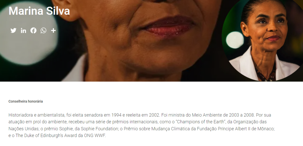 No site da entidade, Marina é mencionada como conselheira honorária do IPAM (Reprodução)