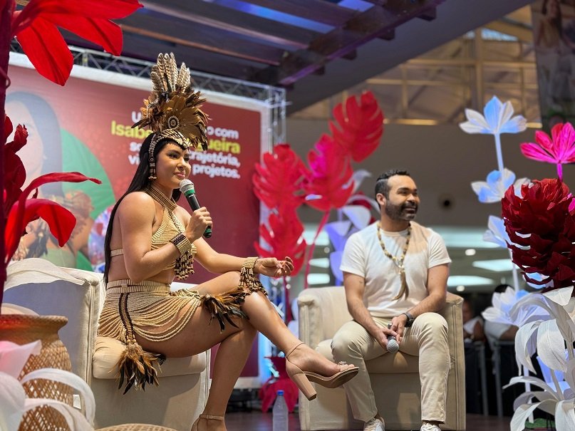 MANAUS (AM) – Isabelle Nogueira contou sobre sua trajetória até chegar ao posto de cunhã-poranga do boi Garantido e a participação no Big Brother Brasil, durante o “Fala, Cunhã”, realizado no domingo, 18/5, no Sumaúma Park Shopping, na zona Norte de Manaus.