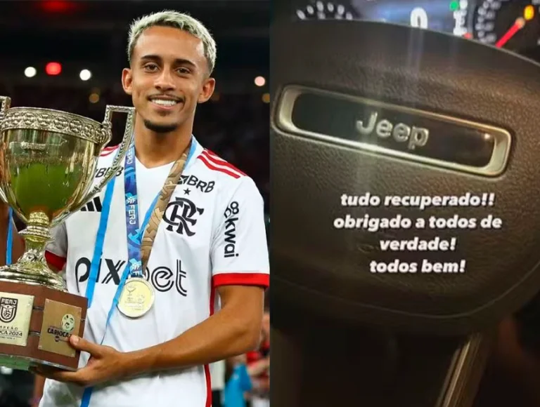 “Tudo recuperado! Obrigado a todos de verdade! Todos bem!”, escreveu o jogador nas redes sociais junto com uma foto do volante de seu carro. Entre os itens roubados, estavam o carro, roupas, celulares e a medalha do Campeonato Carioca. Os pertences foram encontrados nas proximidades da estrada Grajaú-Jacarepaguá.