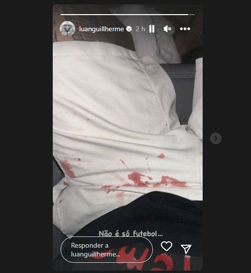 Por volta de 15h desta terça-feira, 4/7, o jogador postou no Instagram a bermuda branca suja de sangue, usada no momento da agressão. Nalegenda escreveu: “não é só futebol…”.