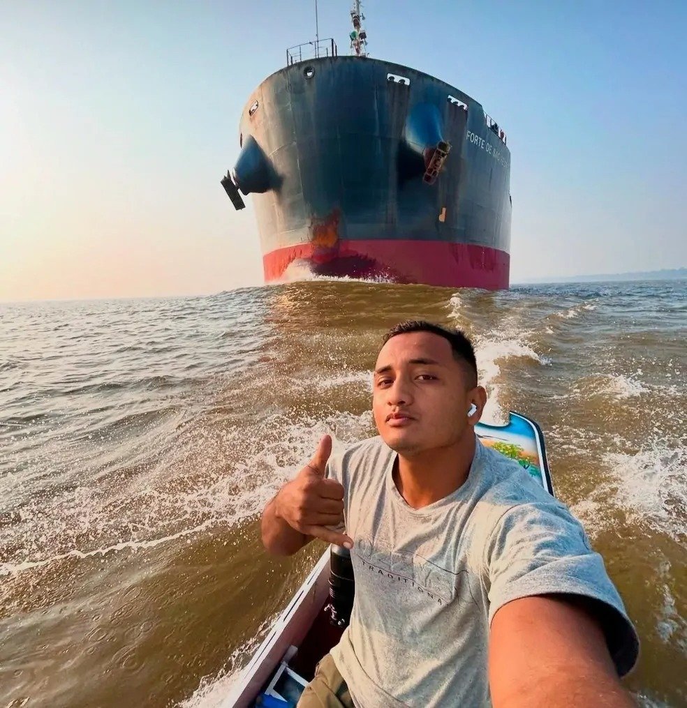 O protagonista do vídeo é lgor Cardoso, funcionário público de 26 anos, natural de Vitória do Jari, no Amapá, que navega pelo rio desde criança, mas em 2024 decidiu registrar as manobras fluviais com seu celular, reduzindo a velocidade da canoa até ficar a poucos metros do navio.
