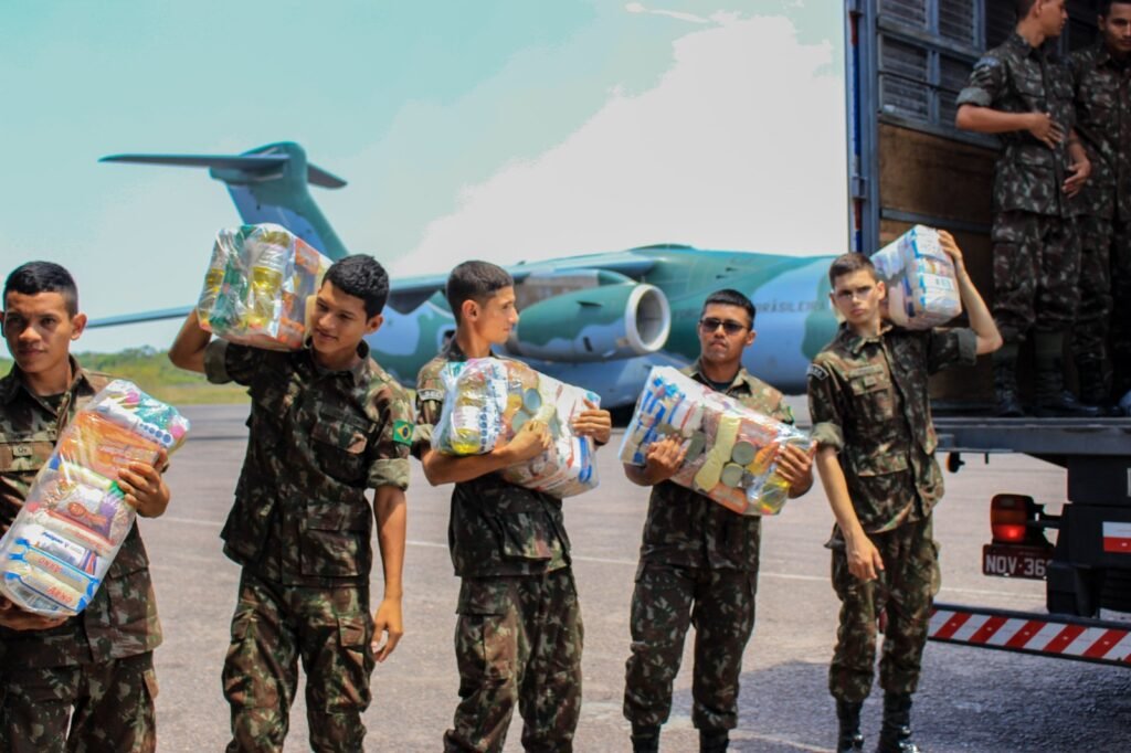 O transporte de ajuda humanitária foi viabilizado pelo Governo do Amazonas em parceria com o Governo Federal e as Forças Armadas do Brasil.