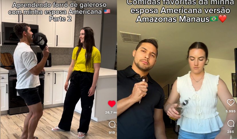 Além das danças e passeios, o casal compartilha vídeos sobre a culinária amazonense. Lucas apresentou à esposa os pratos favoritos em cada refeição.