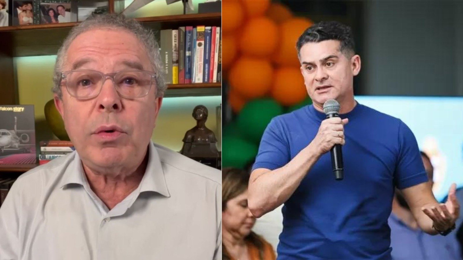 “De outro lado, o Capitão Alberto Neto, que parecia estar em quarto lugar, aquele que não teria chances, veio crescendo, crescendo e quase todas as pesquisas mostram que ele está ganhando densidade. Então, se eu tiver que arriscar um palpite, diria que David Almeida vai para o segundo turno e Capitão Alberto Neto é o mais provável para ser o concorrente dele”, disse Diogo.