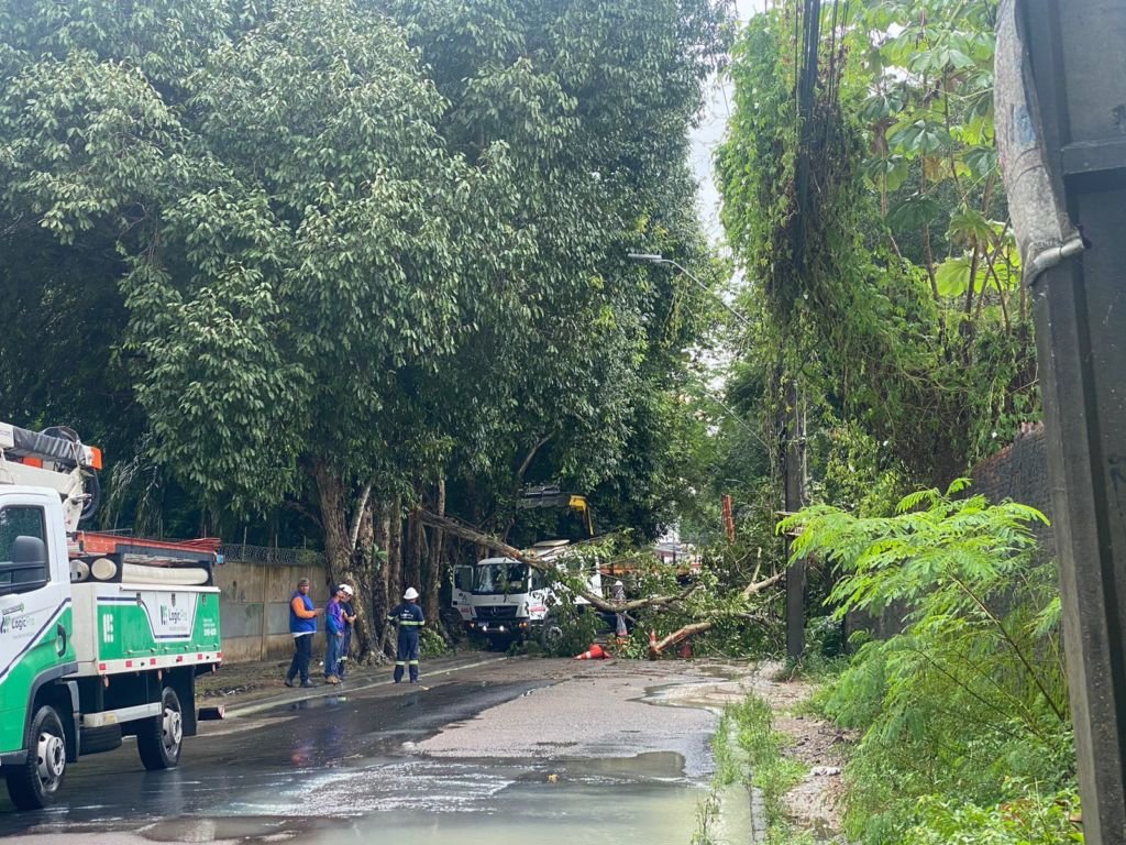 As fortes pancadas de chuva ainda causaram a queda de galhos de árvores na rua José Romão, bairro São José, na zona Leste da cidade. O local foi interditado para a retirada das árvores e liberação do tráfego.
