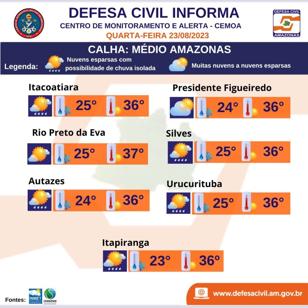 O pico de calor na capital foi atingido por volta das 14h. Mas, no domingo, 20/8, o Inmet registrou o dia mais quente do ano na capital amazonense, quando os termômetros registraram 37,4ºC.