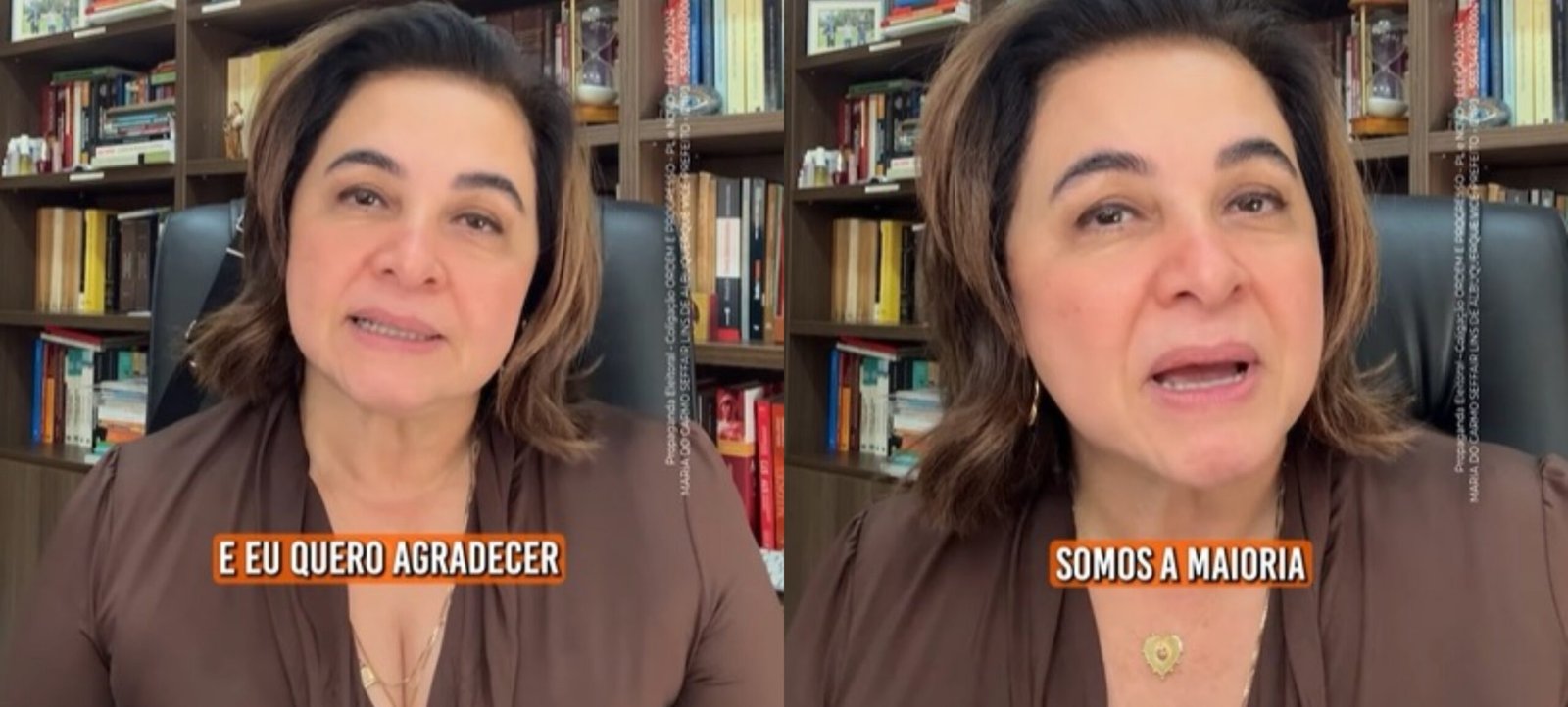 “Bom dia! Primeiro, quero agradecer a Deus, que é justo e misericordioso. Também agradeço a todo o apoio e carinho que recebi após o ataque machista e mentiroso do candidato Renato Júnior. Meu muito obrigada de coração”, iniciou a professora.