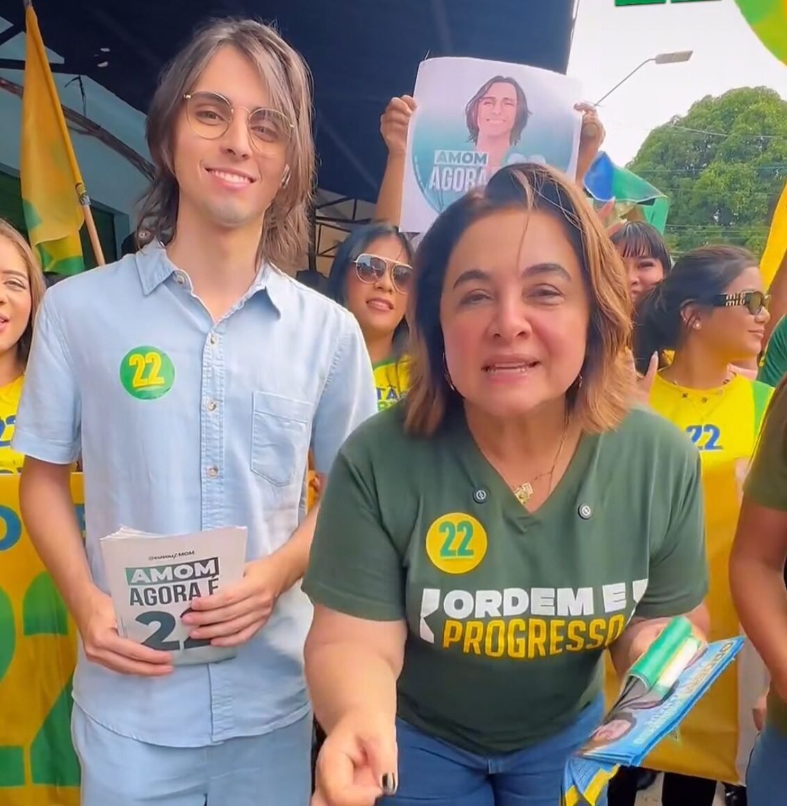 “Nossa caminhada é aqui no Novo Aleixo, e o banzeiro verde e amarelo da chapa Ordem e Progresso só cresce. Olha quem está aqui comigo (Amom Mandel). A gente vai arrasar Manaus, a gente vai limpar do poder essa política mentirosa, de pinóquio manauara”, declarou a candidata ao lado do parlamentar.