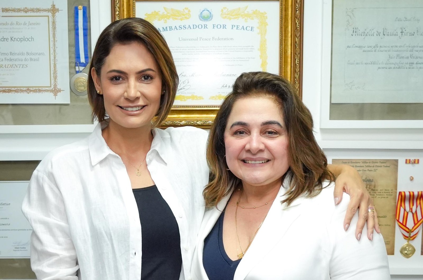 “A Michelle é muito querida. Vim prestar minha solidariedade e apoio ao nosso presidente Bolsonaro e a sua família, que enfrentam uma das perseguições políticas mais imoral da história desse país”, conta Maria do Carmo.