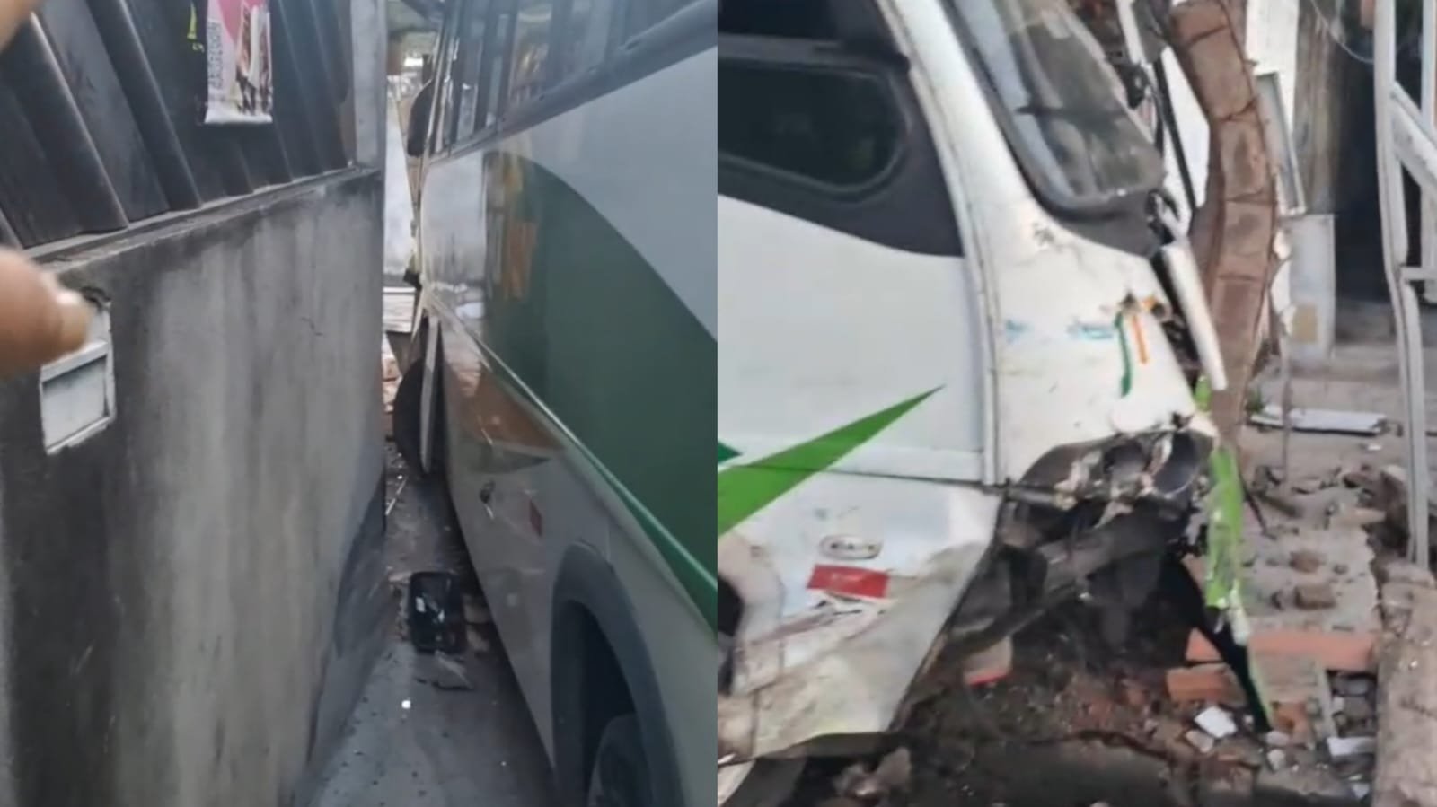 Segundo um morador que registrou o acidente em vídeo, o micro-ônibus desceu a rua sem conseguir frear, bateu em outro veículo e, ao tentar desviar, atingiu a sarjeta antes de colidir com o muro da residência.