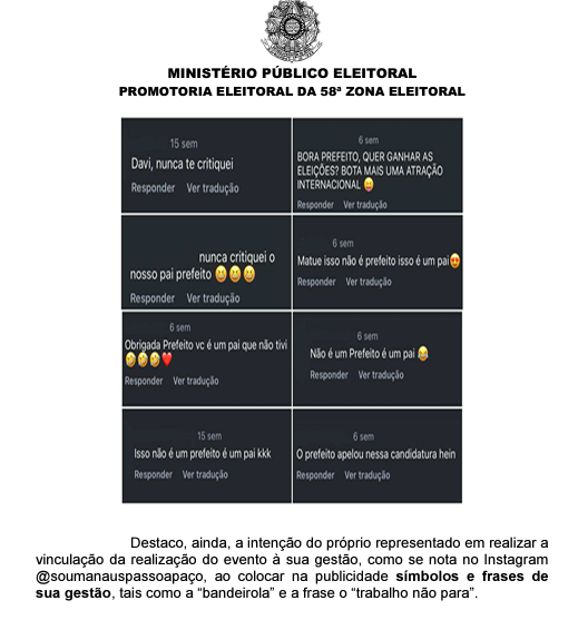 Porém o Ministério Público Eleitoral, após análise, considera potencial quebra de isonomia entre as candidaturas e a possibilidade do efeito de promoção pessoal de David Almeida ao cargo de chefe do Executivo Municipal (reeleição) entende que o fato da propaganda para fins informativos ter sido autorizada judicialmente, não autoriza e tampouco pode suplantar a necessidade de que sejam obedecidos os regramentos legais que visam a realização de eleições equilibradas, inclusive pelo candidato à reeleição a Prefeito de Manaus-AM.